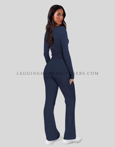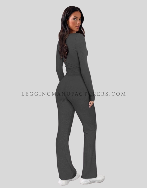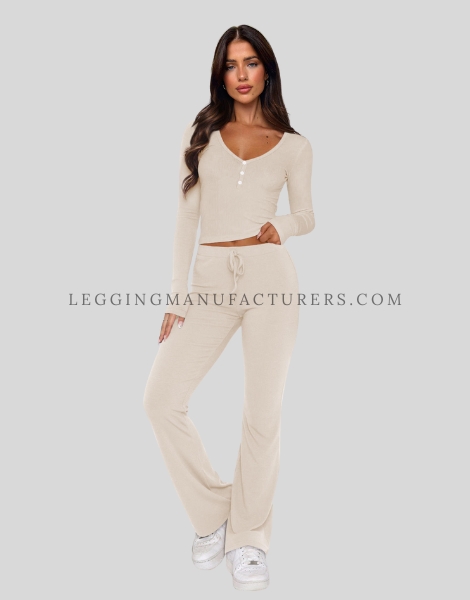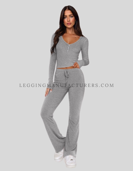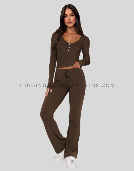 Unbranded Leggings Collection Flared Leggings with Henley Neck Top
